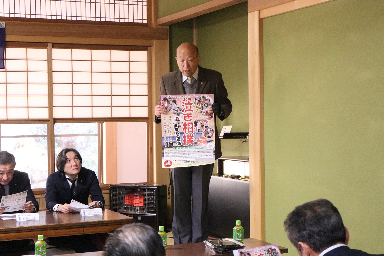 L.中沢澄夫から6月に行われる泣き相撲の説明
