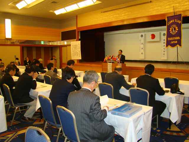 スピーカーに高山岊城LC元会長で松井総合経営事務所理事長のL.松井 正勝からお話しを頂きました。題目は、<変革の時代を生き抜く手立て><ライオンズクラブの今後の在り方>ということで地元の経済状況の変革や名古屋地区での実例を盛り込みながら高山での現状を把握し我々の対応の在り方をお話しされました。企業トップに置いては、社員と共に走り続ける為の方策や会計人との関わり等興味深い内容でした。又企業と相まってライオンズクラブに関しましてもここのクラブとの連携を図り経費等のシェアをもっとすすけられればという提案をされました。