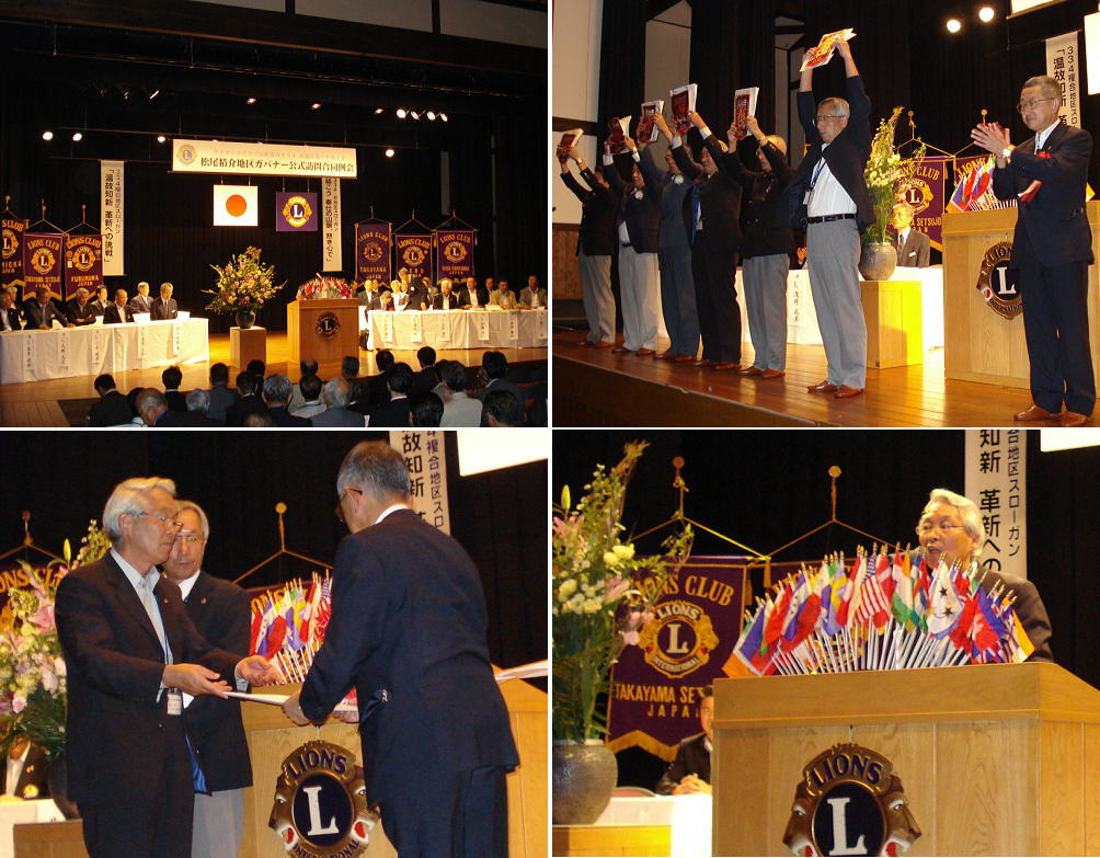 地区ガバナー松尾精介氏をお招きして、高山ライオンズクラブ・高山せつじょうライオンズクラブ・古川ライオンズクラブ・神岡ライオンズクラブ・下呂ライオンズクラブ・飛騨金山ライオンズクラブの合同例会を神岡町の船津座にて開催をいたしました。