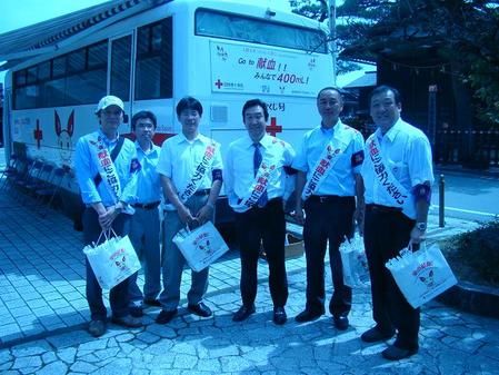 説明 小林会長、有巣副会長、川崎会計、井上健康管理委員長、平委員長、美濃PR委員長で街頭キャンペーン。